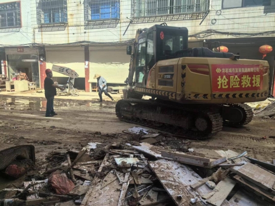 6月20日,市政集團(tuán)搶險(xiǎn)救災(zāi)突擊隊(duì)到達(dá)武平巖前鎮(zhèn)。現(xiàn)場(chǎng)一片狼藉,不僅整個(gè)片區(qū)斷水?dāng)嚯姡◤V街、環(huán)城路等主要街道被淤泥及各類建筑垃圾覆蓋,救援人員的食宿也沒(méi)辦法得到保證。